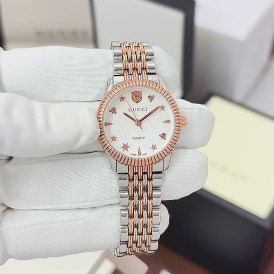 With Gucci on your wrist, style speaks first. A graceful dual-tone timepiece designed to express elegance and love—perfect for gifting and everyday luxury wear.