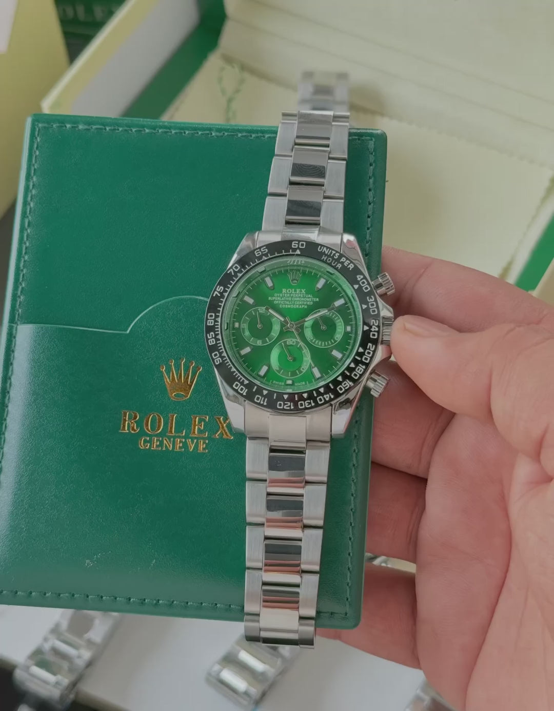 - Green dial with black Cerachrom-style bezel β iconic Daytona look