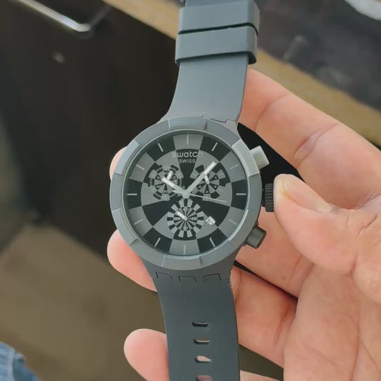 Make a stunning style statement with the Swatch Checkpoint Black Chronograph. Designed with a bold full-black aesthetic and sporty chronograph functionality, this timepiece delivers modern street-style appeal combined with everyday performance.