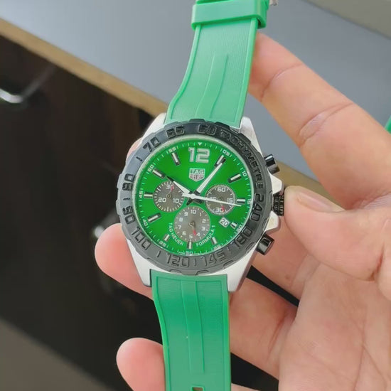 - Green stainless steel dial – standout sporty look 💚